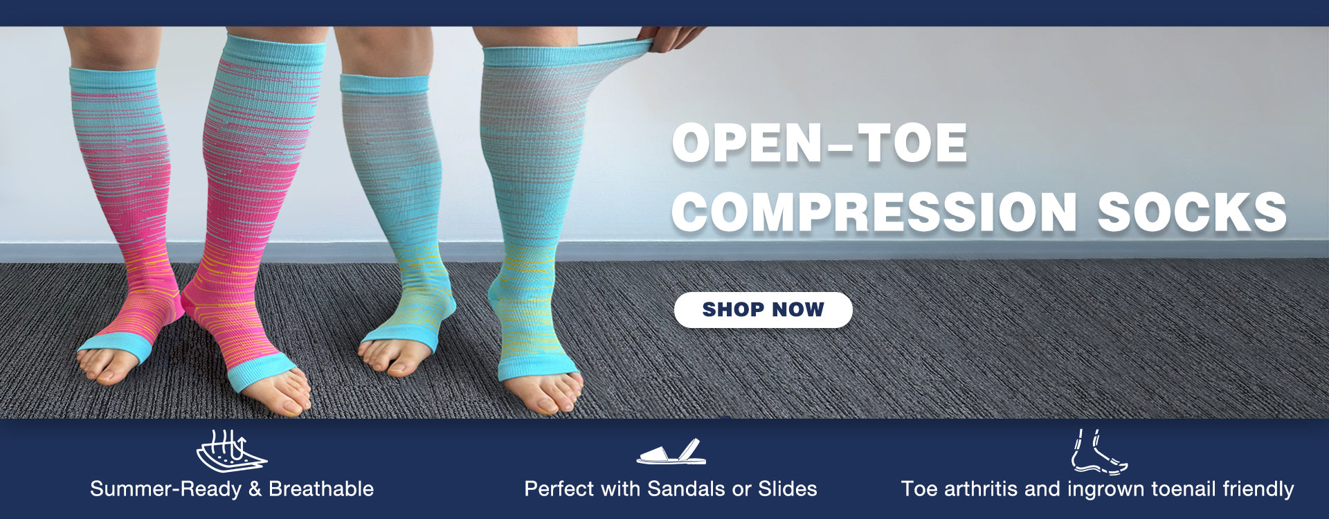 Plus Size Navy Blue Pink Open Toe Compression Socks(3 Pairs)