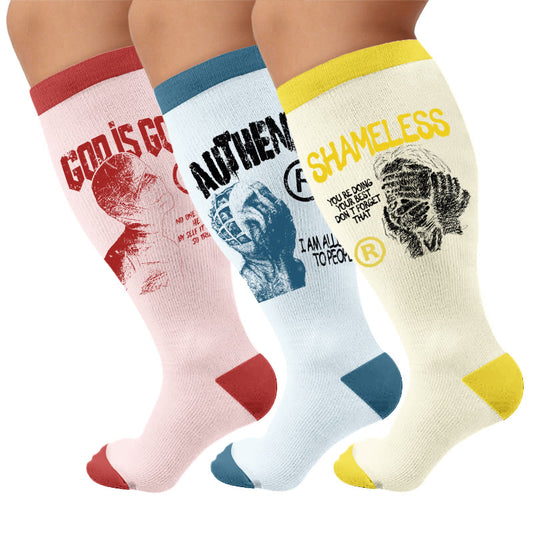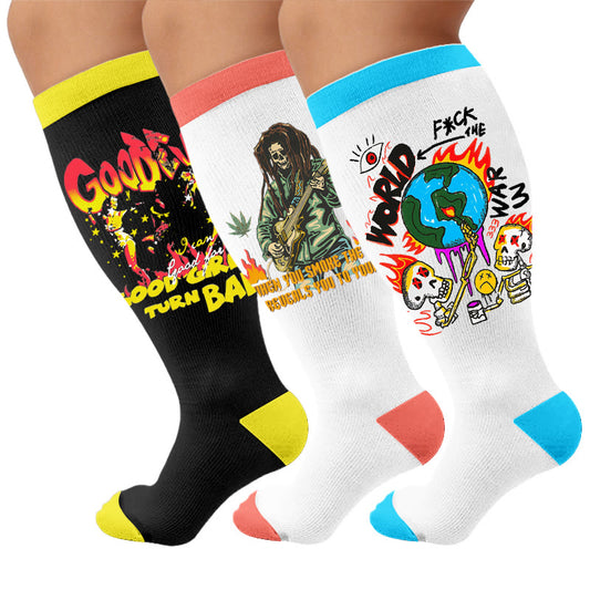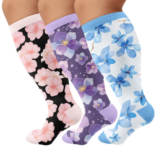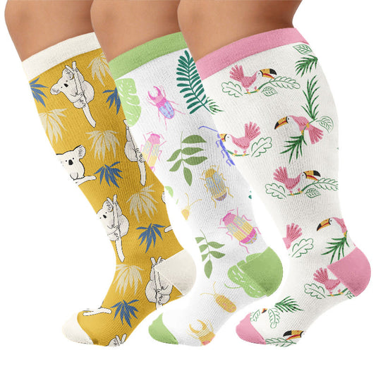 Plusock Colorful Pattern Plus Size Compression Socks 2XL-7XL(3 Pairs)