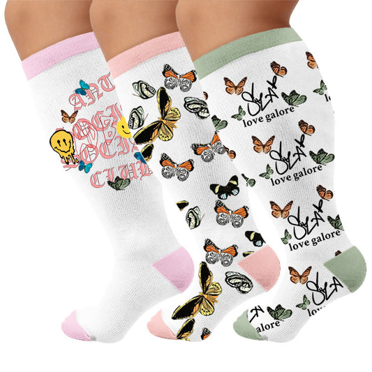 Plusock Plus Size Butterfly Floral Print Compression Socks