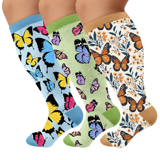 Plusock Plus Size Multicolor Butterfly Compression Socks