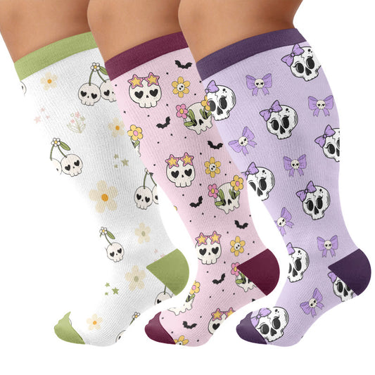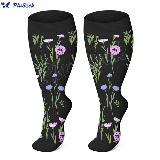Plusock Plus Size Painted Flowers Compression Socks(3 Pairs)