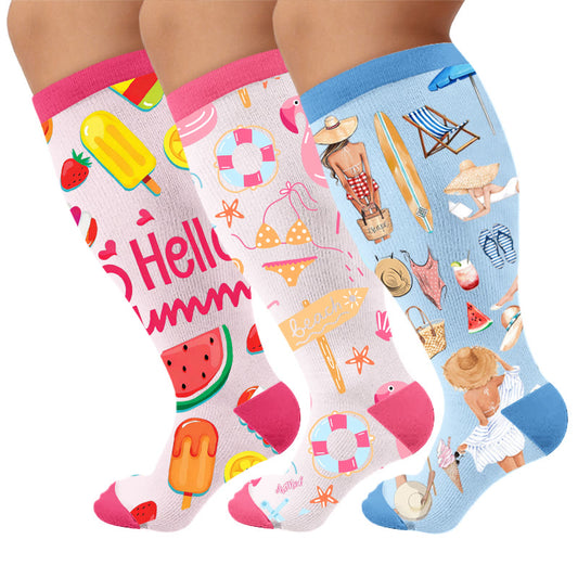 Plusock Plus Size Hello Summer Printed Compression Socks