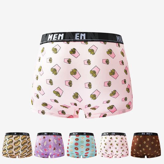 Plusock Food Snacks Print Men's Breathable Boxer Briefs(5 Packs)