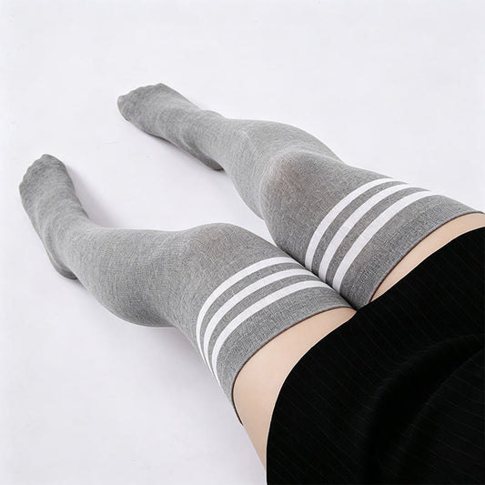 Plusock Three Bar Stripes Thigh High Socks(2 Pairs)