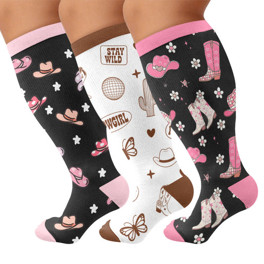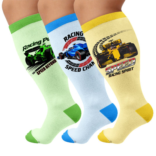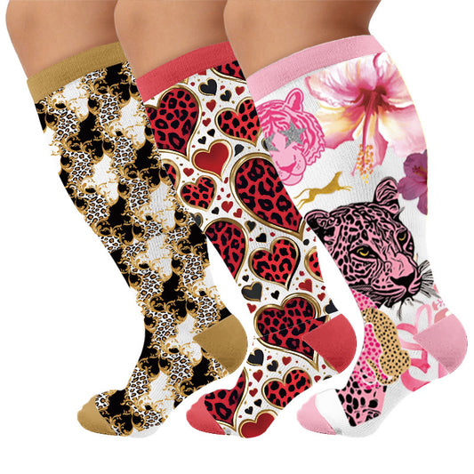 Plusock Colorful Pattern Plus Size Compression Socks 2XL-7XL(3 Pairs)