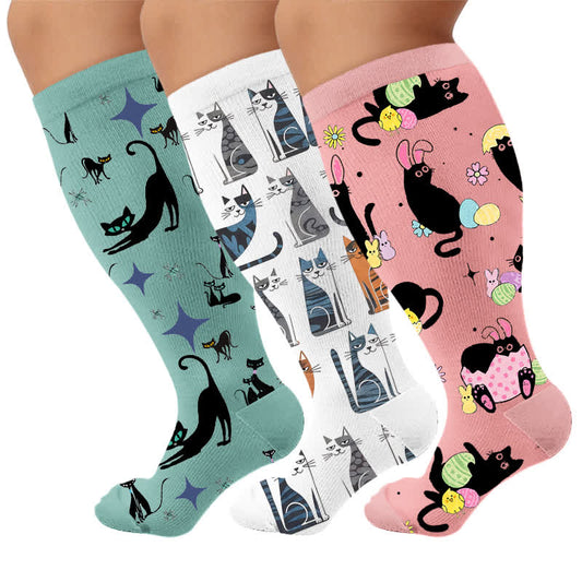 Plusock Plus Size Pastel Cat Print Compression Socks