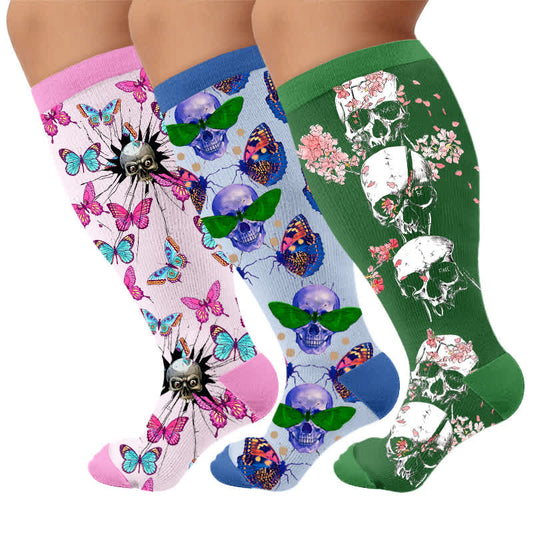 Plusock Plus Size Pastel Butterfly Floral Compression Socks