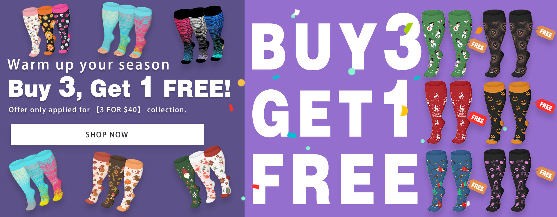 Plusock Plus Size Jolly Christmas Compression Socks(3 Pairs)