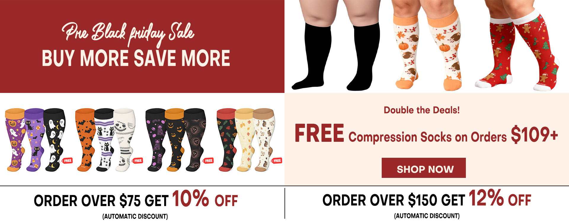 Plusock Plus Size Wide Calf Sports Compression Socks 2XL-7XL(3 Pairs)