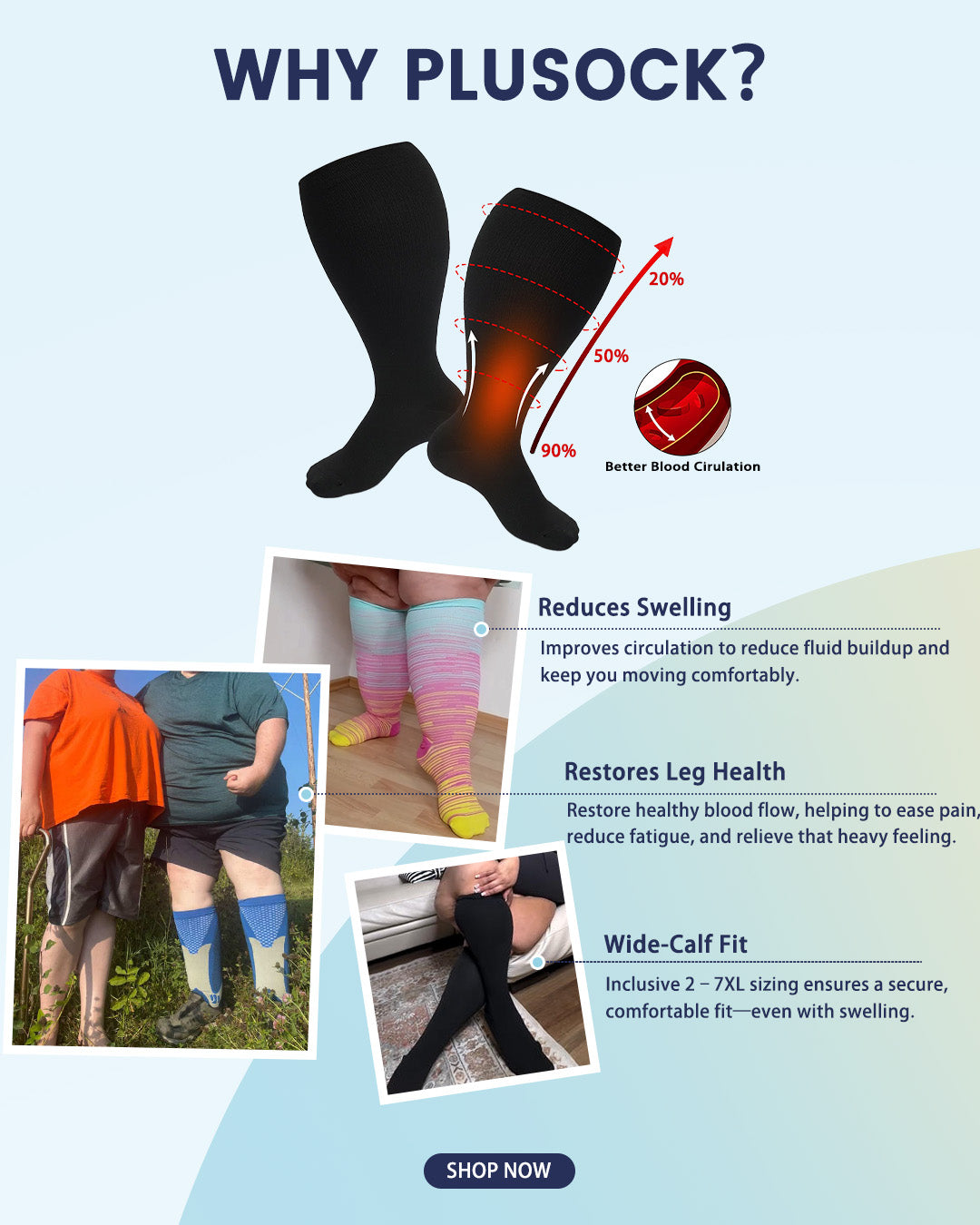 Plusock Plus Size Reading Compression Socks