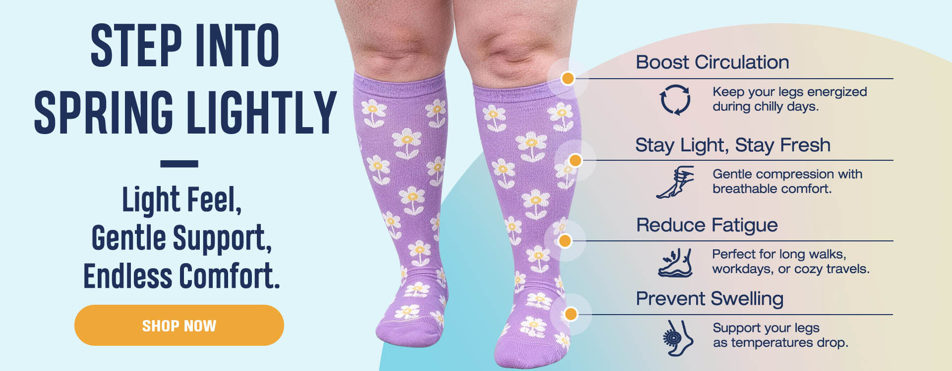 “I just received these last evening. I put these on to try right away. I like how easy they were to put on. I bought 4 pairs and have worn a pair all day. They are not tight. I can feel them working I think, I like them a lot. am so thankful I ordered these to try. So give them a try and hope you will be surprised as I am. I can even walk better after being on my feet a lot today.”——Ashley