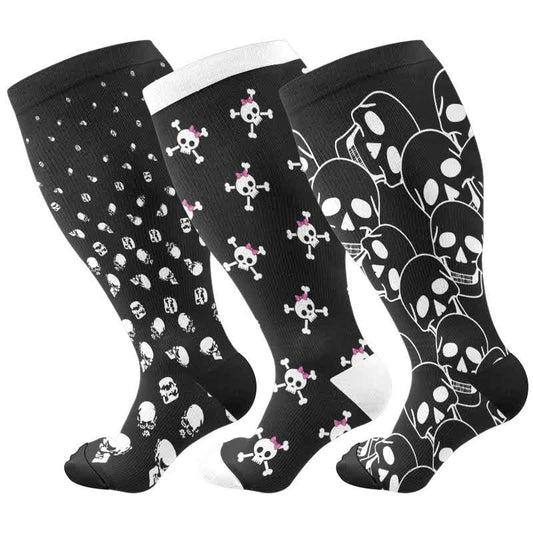 Plusock Plus Size Halloween Floral Skull Series Compression Socks(3 Pairs)
