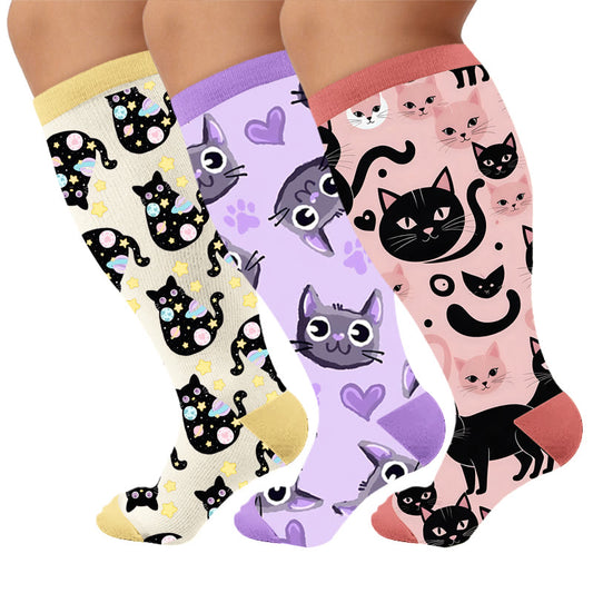 Plusock Plus Size Cute Quirky Cat Compression Socks