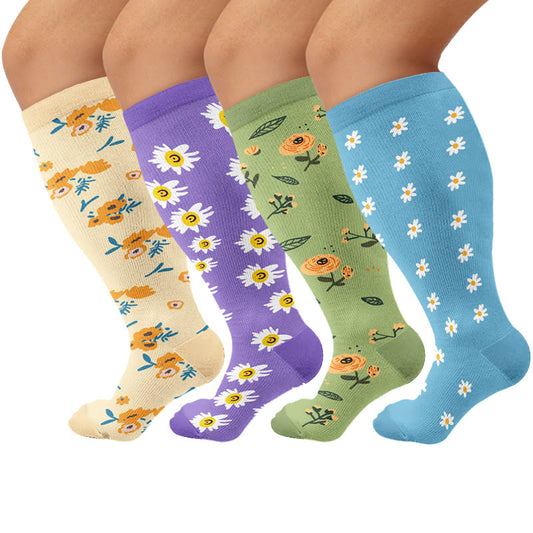 Plusock Plus Size Vintage Inspired Floral Compression Socks(4 Pairs)