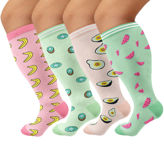 Plusock Plus Size Fruity Fun Compression Socks(4 Pairs)