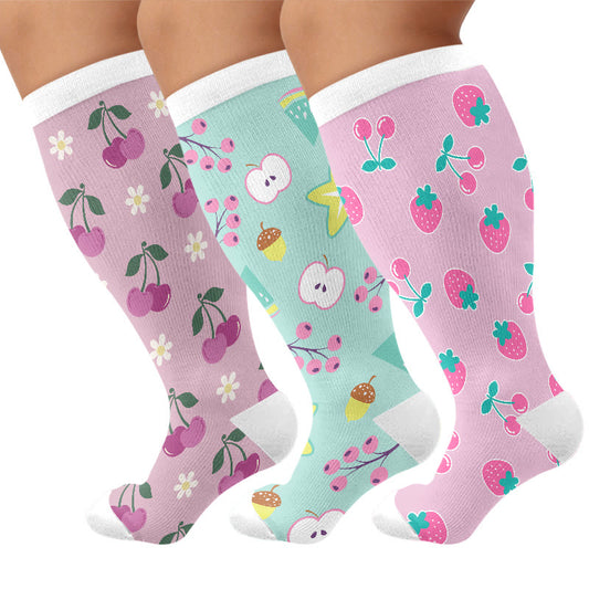 Plusock Plus Size Sweet Fruit Print Compression Socks