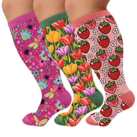 Plusock Plus Size Blossom Compression Socks(3 Pairs)