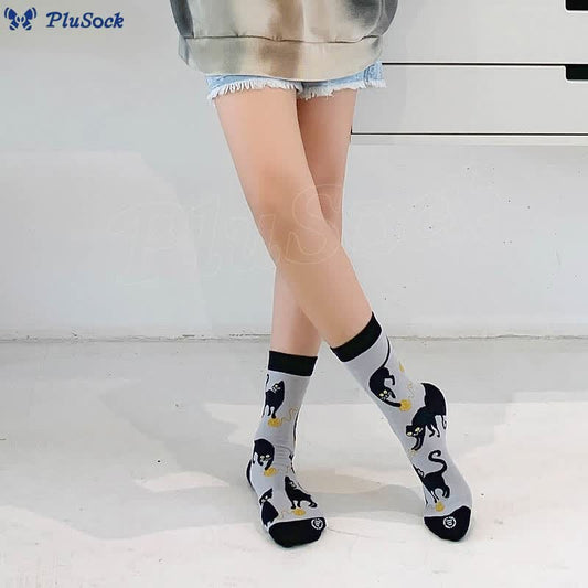Plus Size Cartoon Black Cat Quarter Socks(3 Pairs)