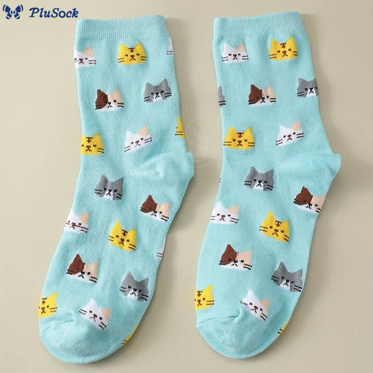 Cartoon Cat Head Quarter Socks(5 Pairs)