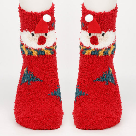 Plus Size Christmas Warm Coral Fleece Quarter Socks(3 Pairs)