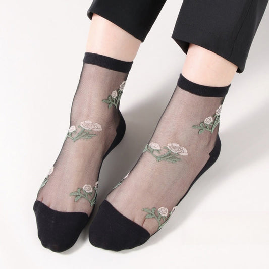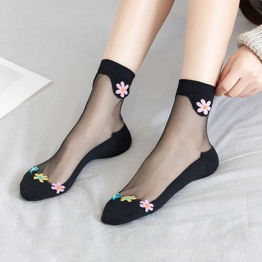 Flower Ice Silk Quarter Socks(9 Pairs)