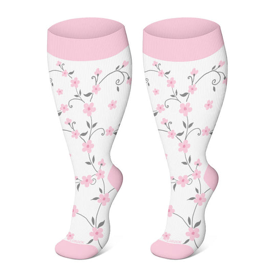 Plusock Plus Size Pink Flowers Compression Socks