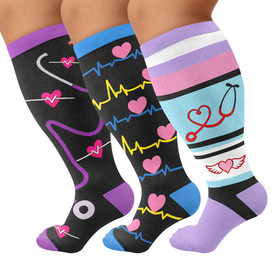 Plusock Plus Size Sweet Heart Print Compression Socks