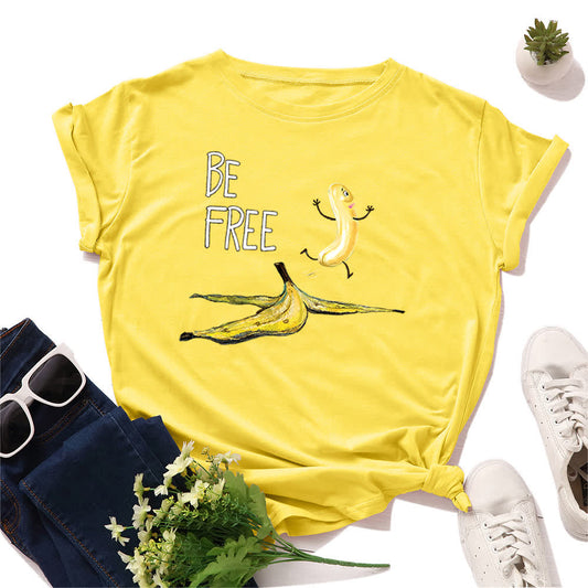 Plusock Plus Size Creative Banana Print Short Sleeve T-Shirt