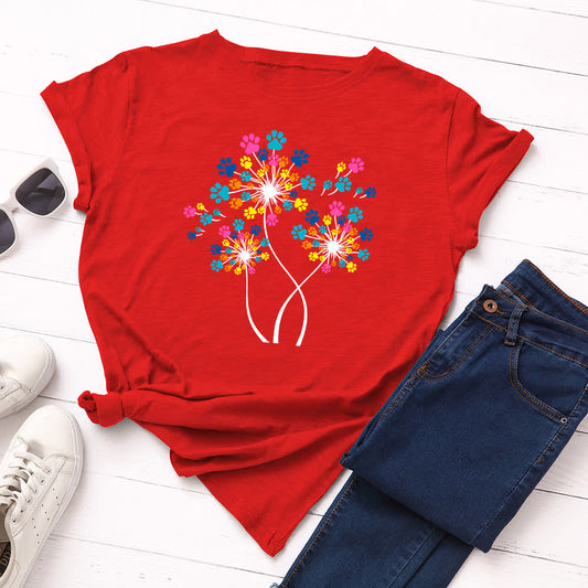 Plusock Plus Size Creative Dandelion Short Sleeve T-Shirt
