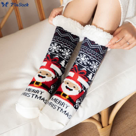 Plusock Plus Size Santa Hat Slipper Socks(2 Pairs)