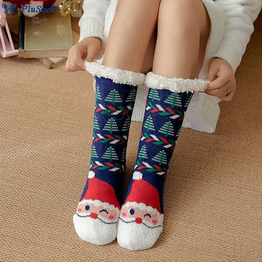 Plusock Plus Size Christmas Tree Gifts Slipper Socks(2 Pairs)