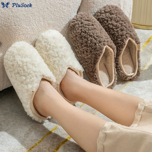 Plusock Plus Size Fuzzy Curly Fur Slippers