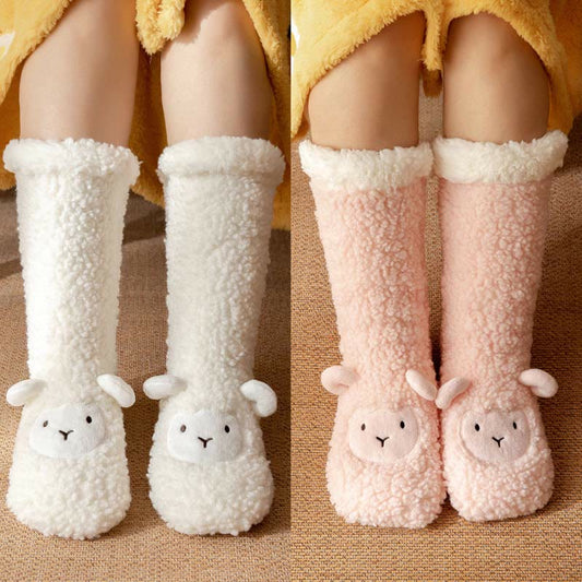 Plusock Lamb Design Coral Fleece Winter Slipper Socks