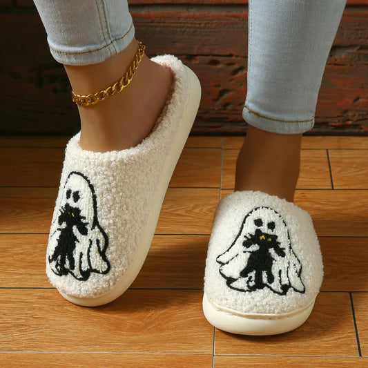 Plusock Plus Size Halloween Ghost Face Print Slippers