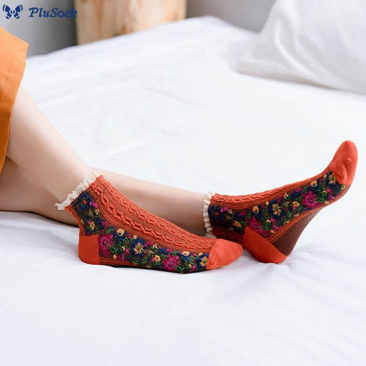 Plusock Folk Style Floral Quarter Socks(5 Pairs)