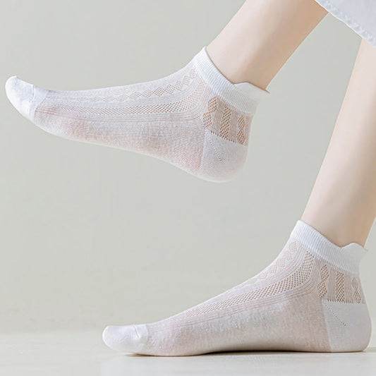 Plusock Rose Soft Ice Silk Quarter Socks(5 Pairs)