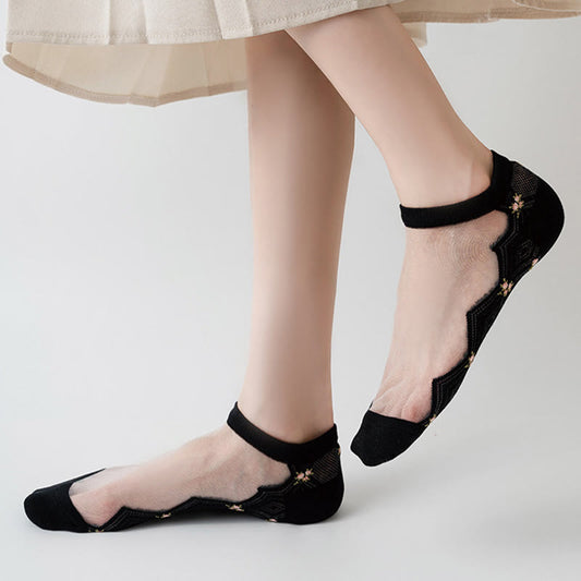 Plusock Ultra-thin Daisy Flower Sheer Ankle Socks(6 Pairs)