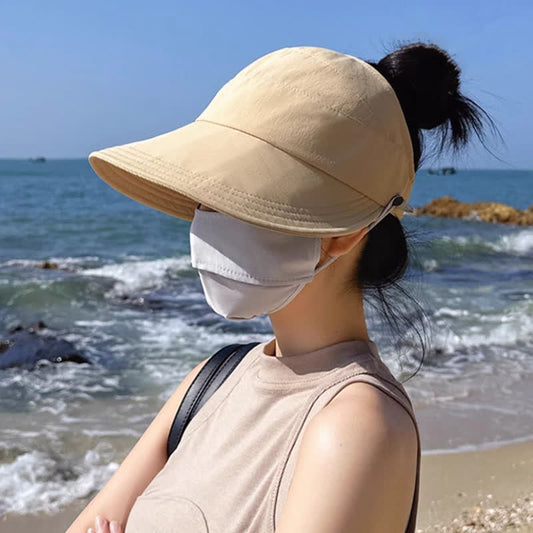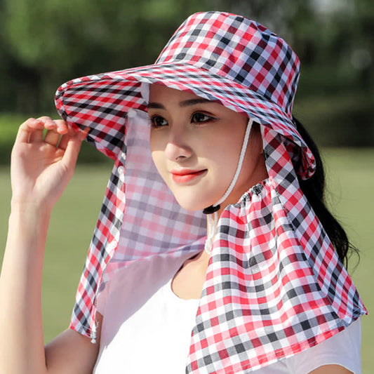 Plusock Mask Removable Plaid Pattern Sun Bucket Hat