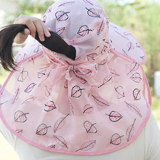 Plusock Leaf Print Large Brim Shawl Mask Sun Hat