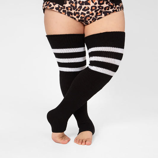 Plusock Plus Size Stripe Open Toe Thigh High Compression Socks