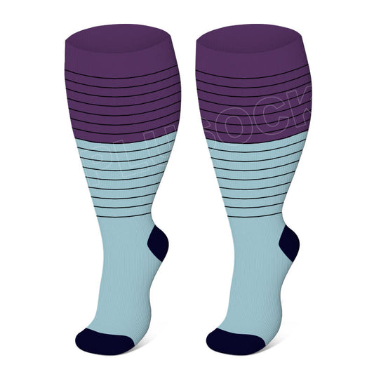 Plusock Plus Size Color Block Striped Compression Socks(3 Pairs)