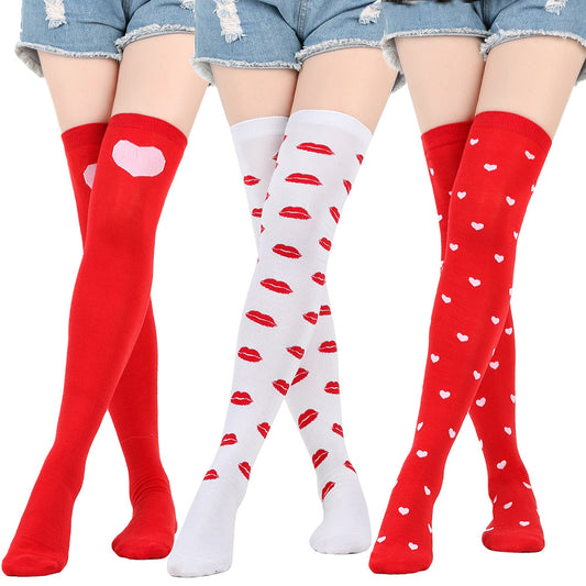 Plusock Red Lips Party Thigh High Socks(5 Pairs)
