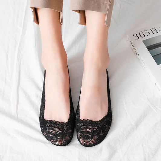 Plusock Plus Size Floral Lace No Show Socks(5 Pairs)