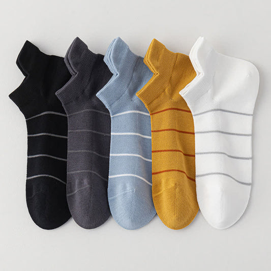 Plusock Striped Cotton Mesh Breathable Ankle Compression Socks(5 Pairs)