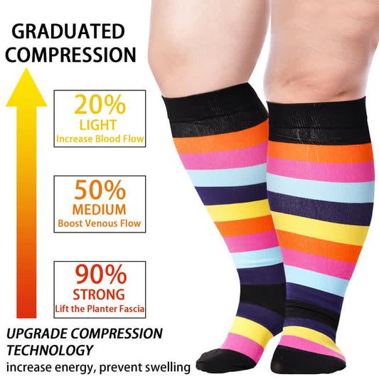 Plusock 2XL-7XL Plus Size Bright Stripe Compression Socks(3 Pairs)