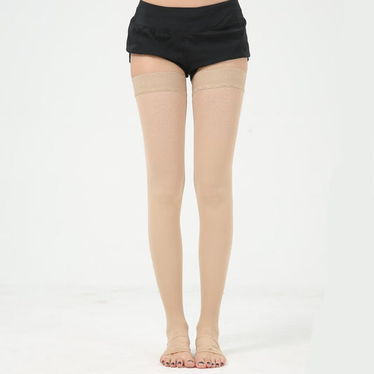 Plusock Plus Size Solid Color Open-toe Thigh High Compression Socks(15-20mmHg)