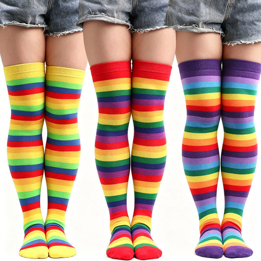 Plusock Rainbow Stripe Thigh High Socks