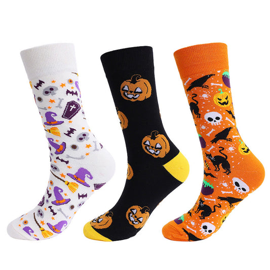 Plusock Plus Size Pumpkin Skull Halloween Crew Socks(3 Pairs)