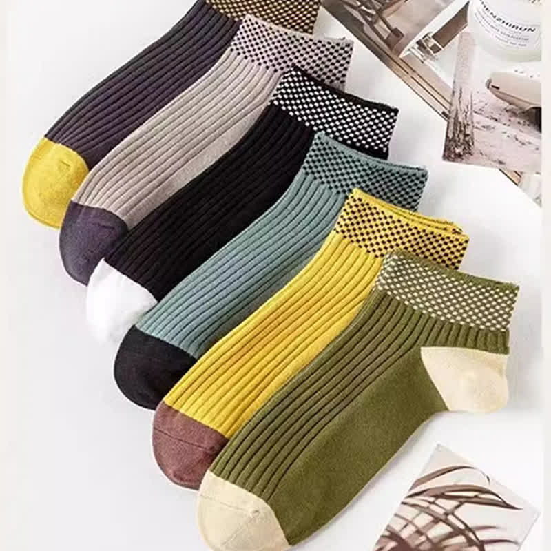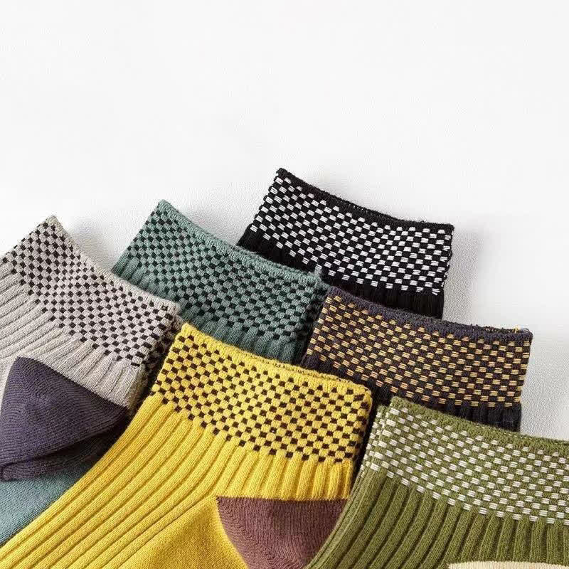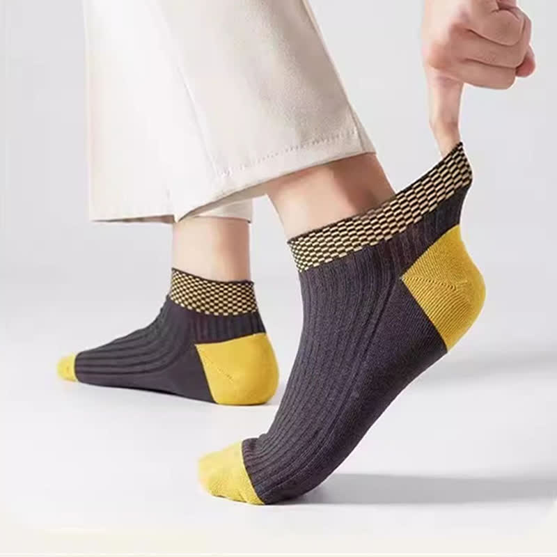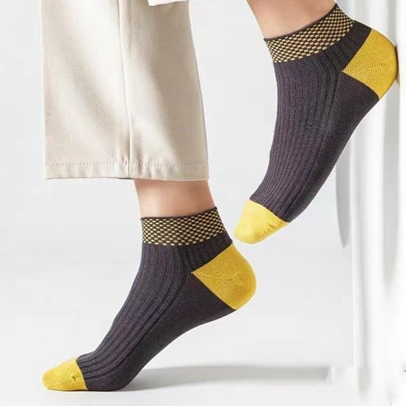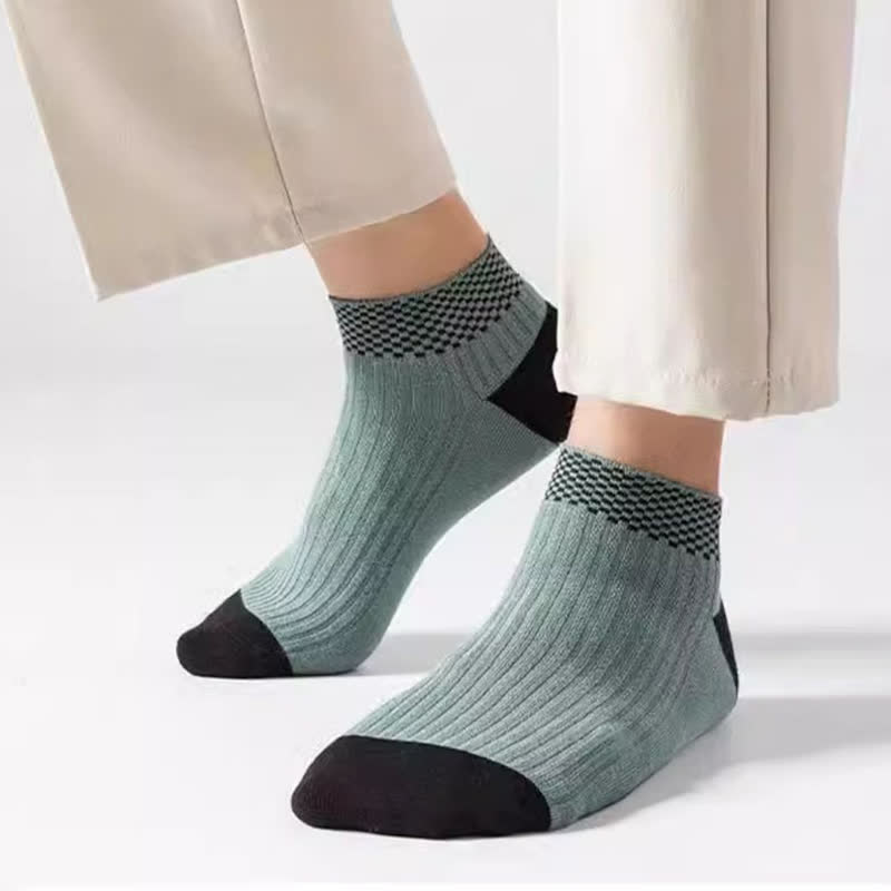 Plusock Breathable Bamboo Fiber Ankle Socks with Checkered Cuffs(5 Pairs)
