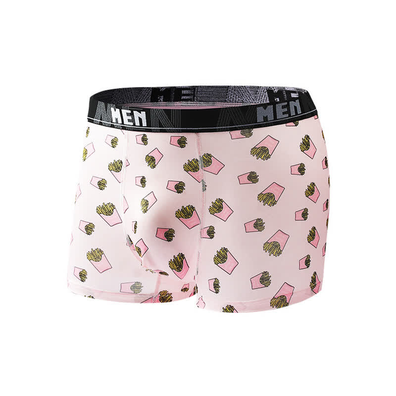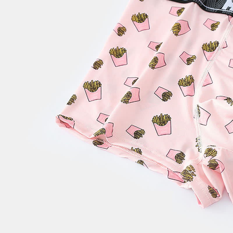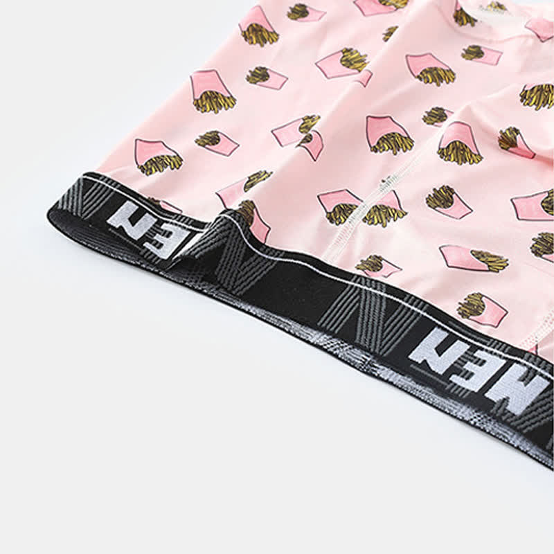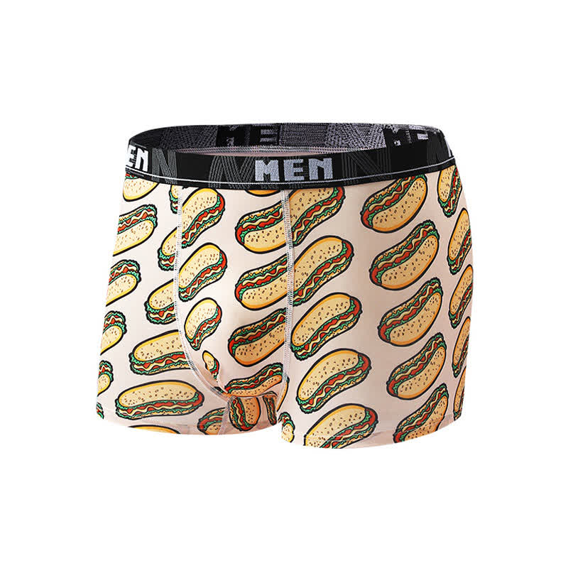 These Food Snacks Print Men's Breathable Boxer Briefs feature fun snack-themed designs including hot dogs, french fries, chocolate, donuts, and ice cream cones. Made from soft, breathable fabric, they provide all-day comfort, support, and a playful touch to your underwear collection.